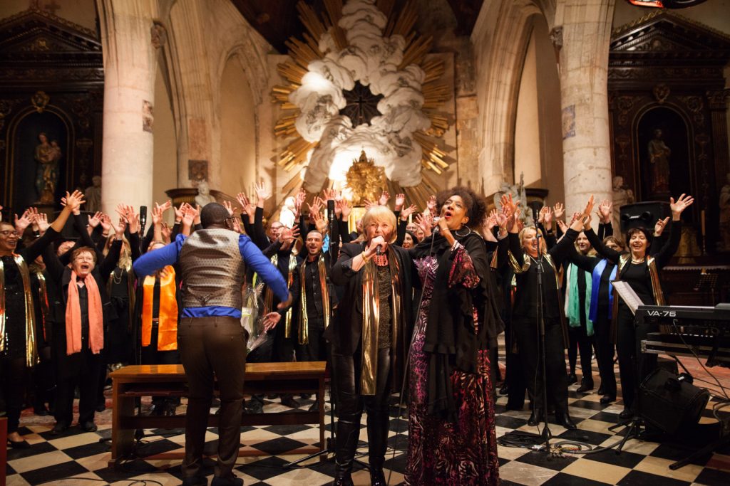 Puis chacun des deux choeurs , Les Barrack’s et Arbolesco Gospel a présenté son répertoire sous la direction dynamique de leur chef respectif Serge Felix Tchicaya et David Dubois.
